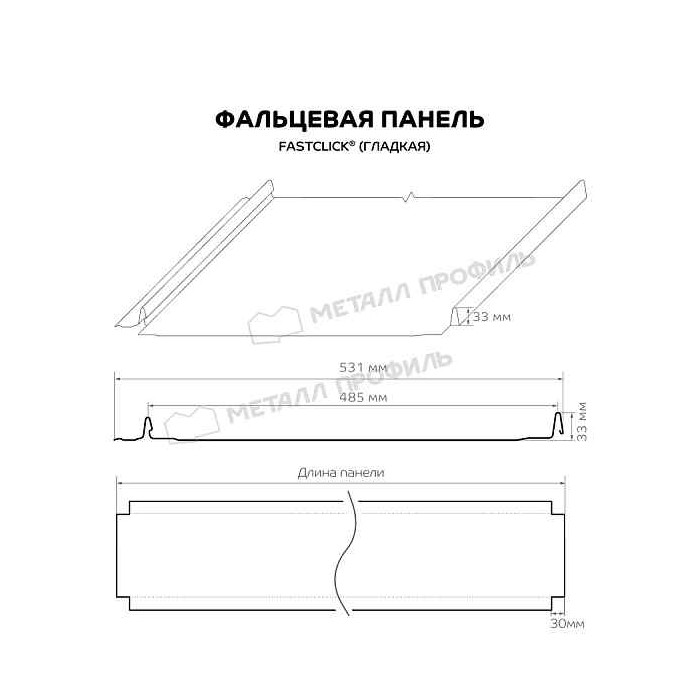 Что касается габаритов, то Фальцевая панель Металл Профиль FASTCLICK (VALORI-20-Violet-0.5) отличается оптимальными параметрами: лёгкую картину шириной 531 мм просто устанавливать, а замки высотой 33 мм обеспечивают плотное соединение. Длину панели можно выбрать, она варьируется от 0,5 до 12 м.